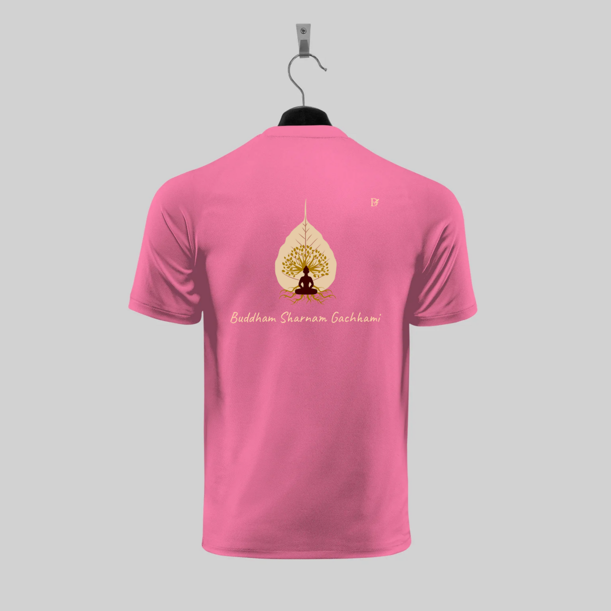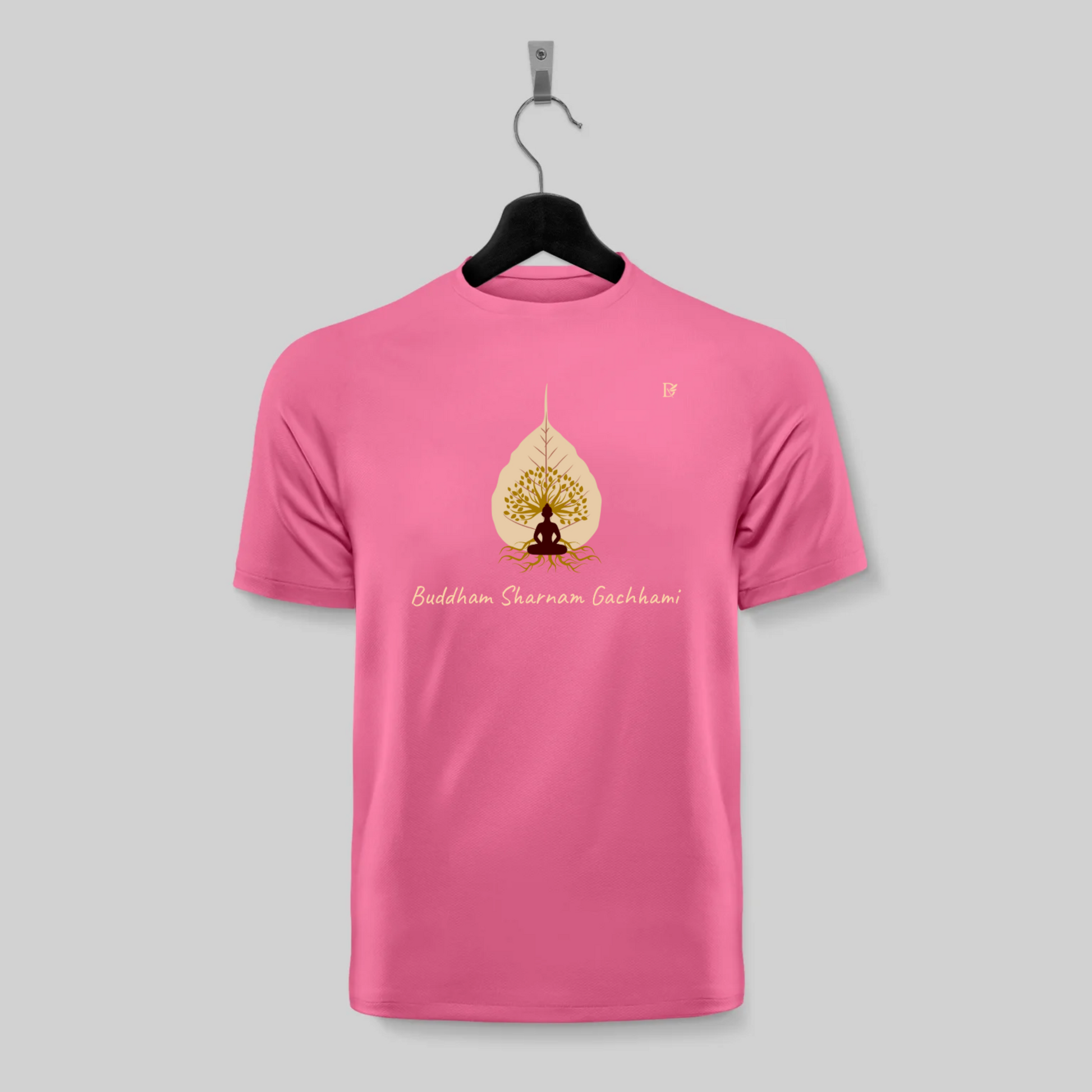 Elevate your wardrobe with this vibrant Polyester Graphic T-Shirt featuring a modern artistic print of Lord Buddha meditating under a tree within a leaf. Made with 100% premium polyester, this tee combines cultural elegance with everyday comfort. The lightweight, breathable fabric ensures a soft feel, quick-dry performance, and long-lasting durability—perfect for both casual wear and special occasions.