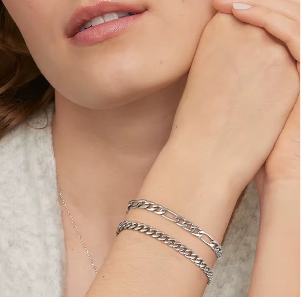 This 18K real gold-plated Cuban link chain bracelet is made of sturdy, waterproof 316L stainless steel, ensuring durability and a hypoallergenic finish. It features double electronic PVD plating for enhanced longevity and a fade-free design. The bracelet is nickel, lead, and cadmium-free, making it safe for all skin types. With multiple sizes (6-8 inches) available, it offers versatile styling options for both men and women. RoHS certification ensures compliance with environmental and safety standards, providing market access assurance.